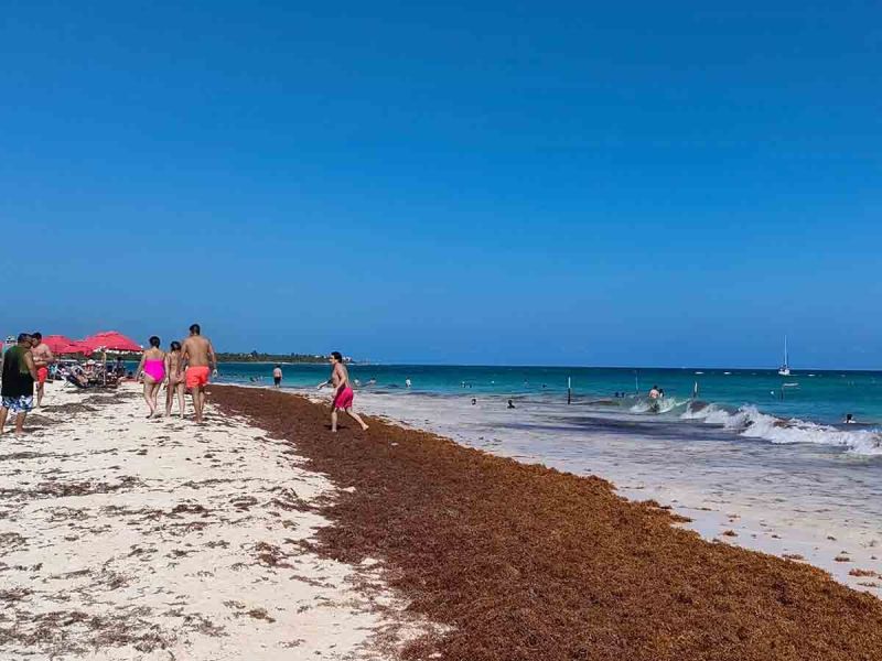 A las playas del Caribe mexicano han comenzado a llegar los primeros manchones de sargazo en vísperas del inicio de la temporada vacacional de Semana Santa, tan solo en Tulum, la línea de alga marina se extiende hasta la zona hotelera hasta llagar a la zona arqueológica.
