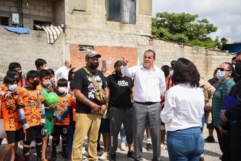 El gobernador Cuauhtémoc Blanco Bravo anunció que se llevarán a cabo obras para mejorar la infraestructura de una cancha de usos múltiples en la colonia La Huizachera y un campo de futbol en Lomas de Jiutepec.