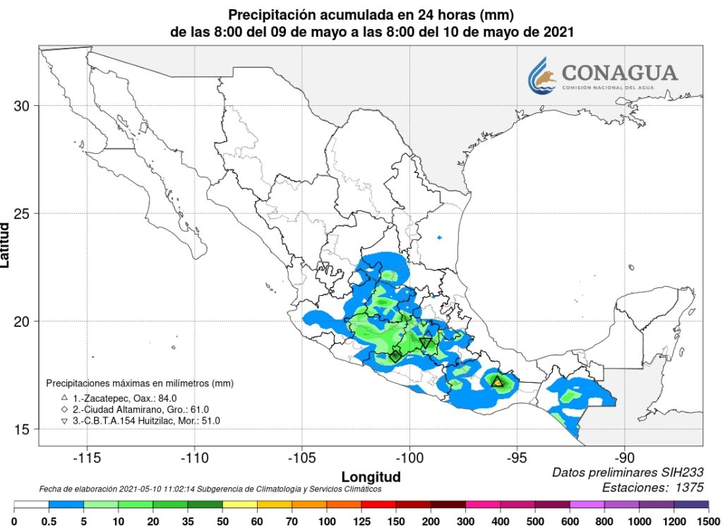 Las lluvias son favorecidas, en parte, por la presencia de la tormenta tropical «Andrés» en el Pacífico, cuya amplia circulación genera fuerte entrada de humedad hacia el occidente y el centro del país.