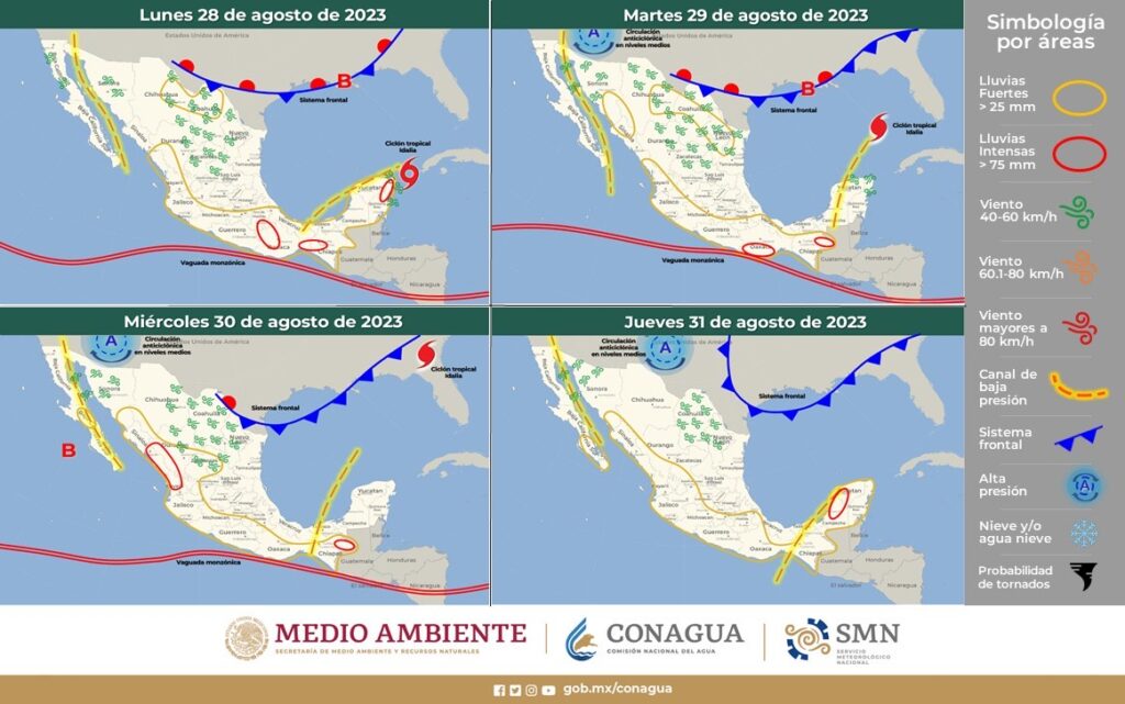 Autoridades emitieron la perspectiva meteorológica referente a las condiciones climatológicas para el periodo 28 al 31 de agosto, en el que se prevén tardes nubladas, lluvias con actividad eléctrica, chubascos y bajas temperaturas al amanecer y al descender el día.
