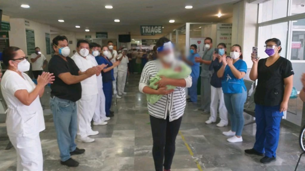 De esta manera, entre aplausos y una valla humana hecha por trabajadores del HGR/MF No. 1, la mujer, con su bebé en brazos, se despidió y expresó: “Agradezco infinitamente por el trabajo y dedicación que tuvieron con mi hijo. Seguirán todos los médicos y enfermeras en nuestras oraciones, porque ellos siguen en la lucha contra el COVID-19”.