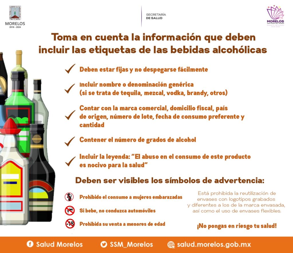 Campos Medina precisó que el consumidor puede verificar que se muestren las leyendas como: “El abuso en el consumo de este producto es nocivo para la salud”, “Prohibido el consumo en mujeres embarazadas”; “Si bebe, no conduzca”; y “Prohibida su venta a menores de edad”.