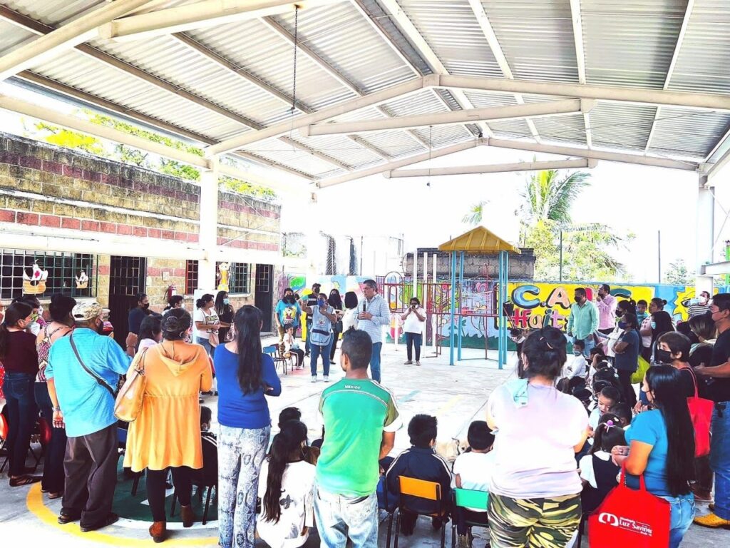 Ante madres y padres de familia de estudiantes del Centro de Asistencia de la colonia Cerro de la Corona, el edil dio cuenta de las acciones ejecutadas para la colocación de cable para dotar de luz a un aula, la compra e instalación de una bomba de agua, el mantenimiento a los sanitarios, la colocación de loseta en el piso de los salones afectados por el sismo, la pintura de juegos y del comedor, entre otros.