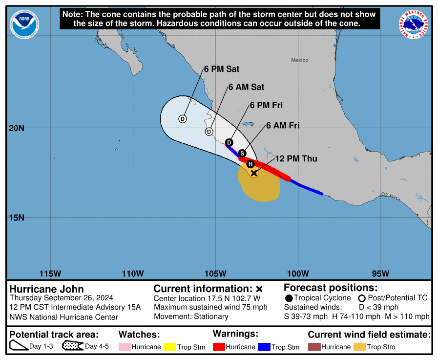 El gobierno de Michoacán informó que, debido a la fuerza del huracán John, ahora de categoría 1, se suspenden las clases presenciales en 20 municipios de la entidad a partir del jueves 26 de septiembre. Gabriela Molina Aguilar, secretaria de Educación del Estado, anunció que esta medida se mantendrá hasta nuevo aviso.