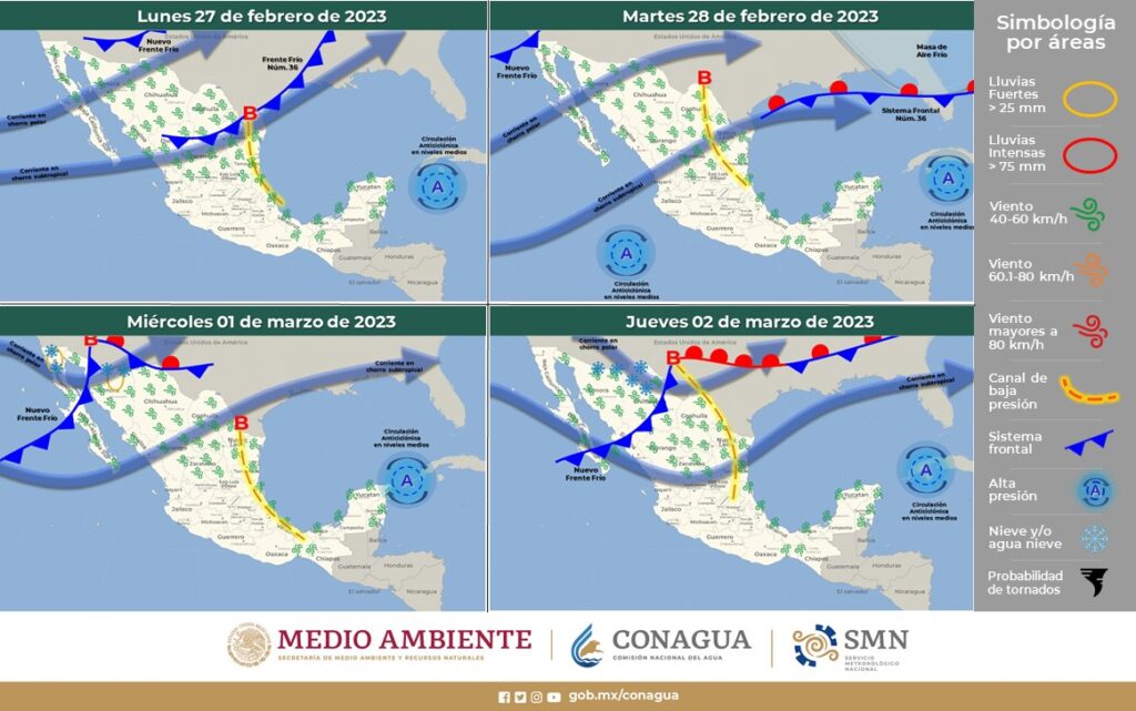 La Comisión Estatal del Agua (Ceagua) emite la perspectiva meteorológica referente a las condiciones que prevalecerán en el periodo del 27 de febrero al 2 de marzo, en el que se prevén condiciones de tiempo estable con cielo despejado en general; ambiente cálido a caluroso durante el día, fresco a frío por la madrugada y al amanecer.