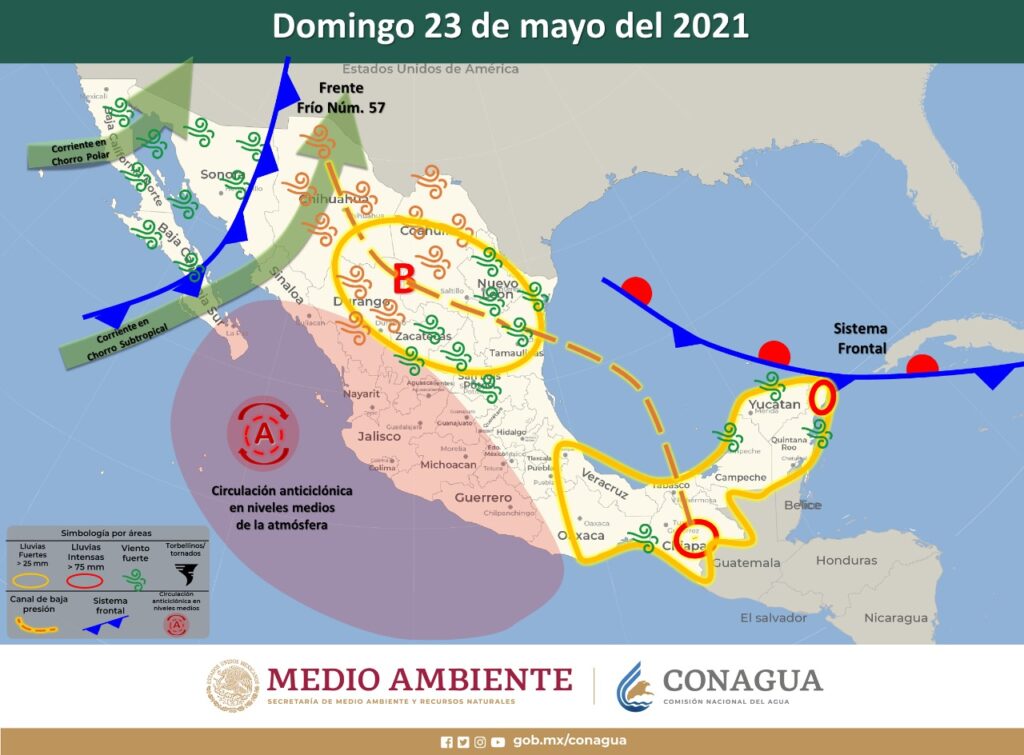 Para el día domingo seguirán dominando condiciones relativamente estables, prevaleciendo cielo mayormente despejado con algunos nublados por la tarde y, aunque la probabilidad es baja, no se descartan chubascos ligeros en la región norte del estado.