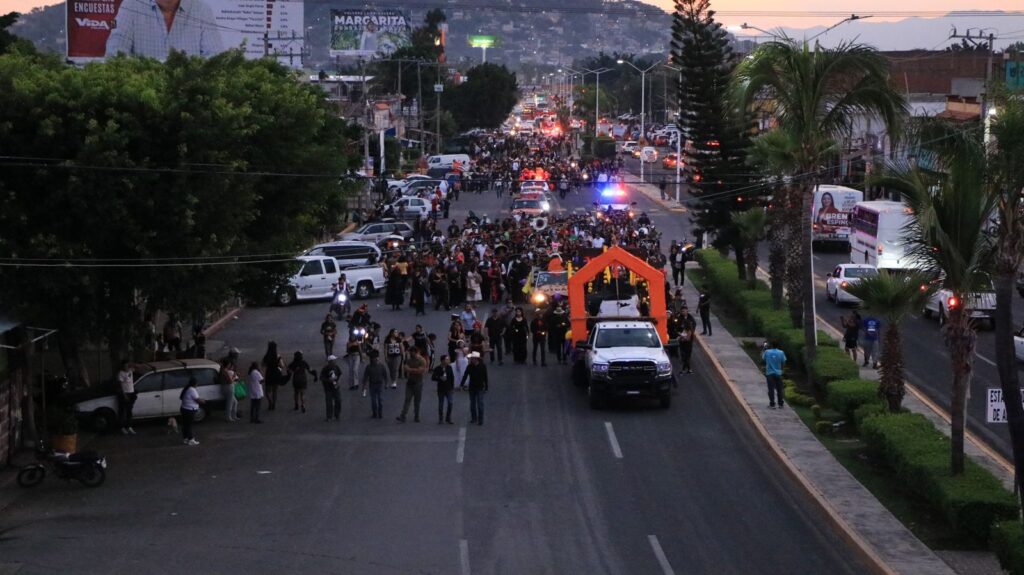 El Gobierno Municipal de Temixco encabezado por Juanita Ocampo Domínguez, el síndico municipal Andrés Duque Tinoco, regidoras, regidores e integrantes del Gabinete encabezaron los contingentes de un colorido desfile de catrinas y catrines que partió de dos puntos: Lomas de Carril y la Delegación de Acatlipa.