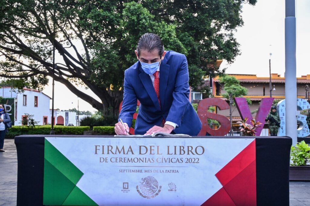 En el acto, el funcionario firmó el Libro de Ceremonias Cívicas 2022 y estuvo acompañado por José Luis Urióstegui Salgado, presidente municipal de la capital; magistrada Elda Flores León, como representante del Poder Judicial; así como, Mayor de Infantería, Gilberto Jiménez Salazar, en representación de la 24/a Zona Militar.