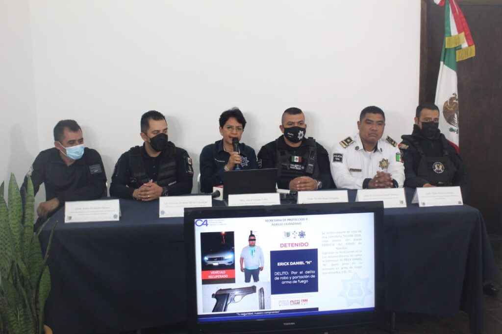 En conferencia de prensa, la titular de SEPRAC, Alicia Vázquez Luna, informó que, gracias a la denuncia realizada a la Central de Emergencias de Cuernavaca 777 312 12 74l de manera oportuna, tuvieron conocimiento que la noche del miércoles en la colonia Prados de Cuernavaca una persona había sido despojada con un arma de fuego de una camioneta TIGUAN modelo 2018, color blanco, con placas RBN545B del estado de Morelos, a quien la policía, tanto del estado como municipal, atendieron y una vez que tuvieron las características del vehículo iniciaron la búsqueda y localización de la unidad automotora.