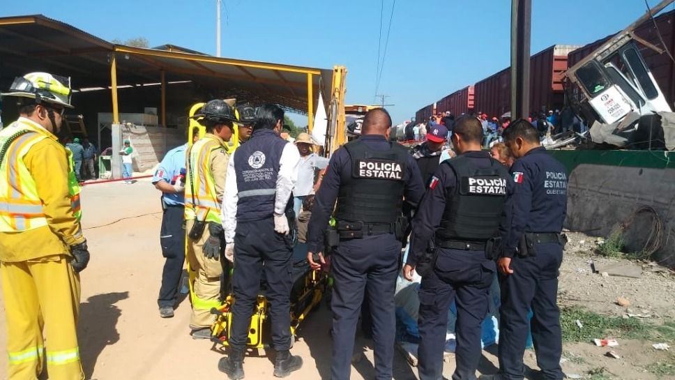 Un camión de pasajeros intentó ganarle el paso al tren, pero no lo logró y el ferrocarril lo embistió este viernes en San Juan del Río, Querétaro. El número de muertos subió a nueve, de acuerdo con el último corte de Protección Civil estatal.