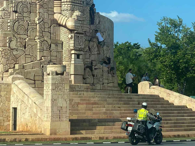 De nueva cuenta se registró un abuso por parte de turista en Yucatán, luego de que en redes sociales comenzaron a circular imágenes en donde se observa a un grupo de viajeros escalando el Monumento a la Patria en la ciudad de Mérida en Yucatán.
