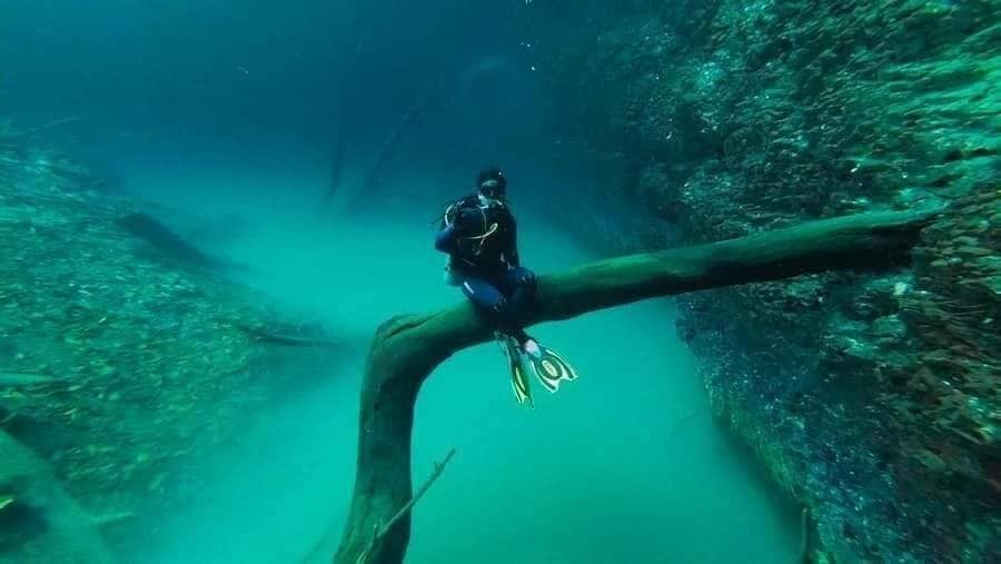 Este fenómeno ocurre por una capa de sulfato de hidrógeno que se encarga de mantener la sal y el agua dulce separadas y aparece como una especie de nube de fondo. Para completar el efecto, hay troncos y restos de vegetación que caen al cenote, creando una especie de “bosque submarino”.