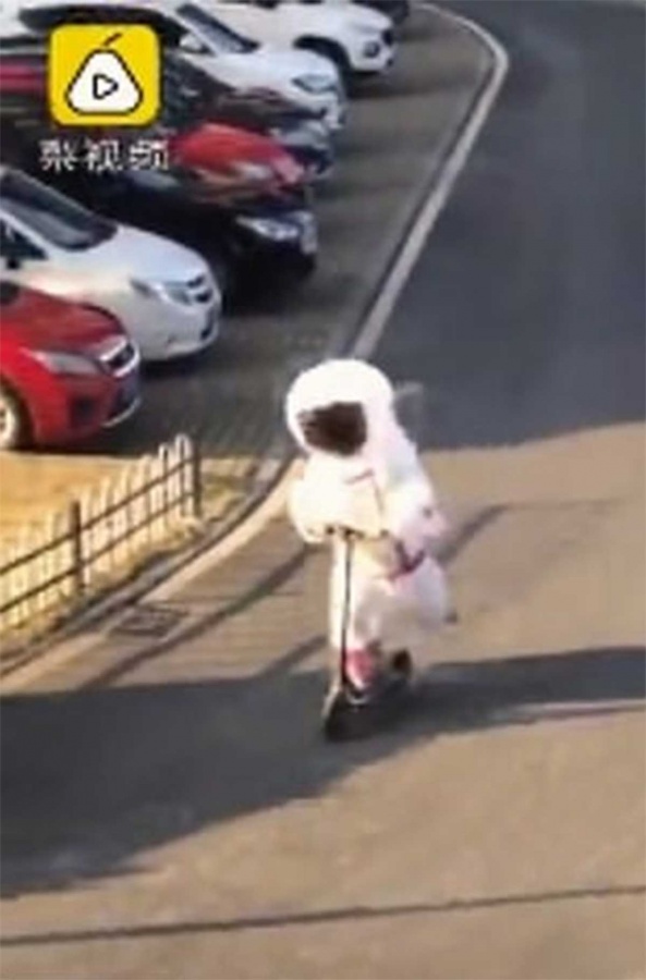 Un hombre chino se enfundó un traje de astronauta, a manera de protección, para salir de casa en plena epidemia de coronavirus e ir de compras.