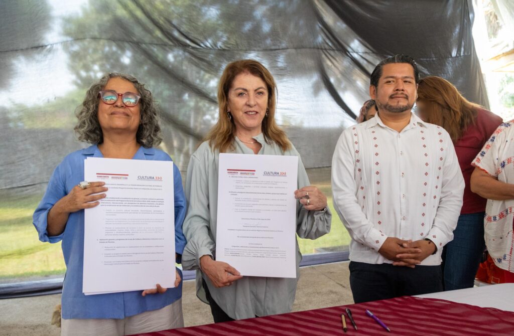 Esta mañana, la candidata Margarita González Saravia, firmó compromisos para el desarrollo y la transformación cultural de Morelos, frente a promotores culturales, integrado por artistas, artesanos, historiadores, cronistas, cineastas, maestros de arte, pintores, entre otros, que conforman la agrupación 33+3.